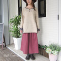 [予約販売] ローズレッドダブルガーゼギャザーパンツ(セットアップ可)**ウエストゴム ふんわり 柔らか