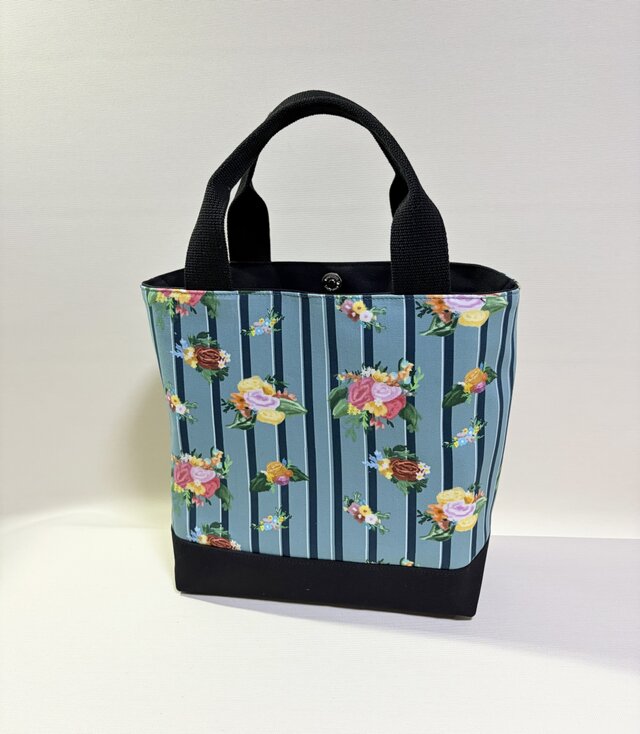 デザイナーが描くアートを日常に。華やぎと規律が織りなすストライプとアンティークフラワー・Mトートバッグ