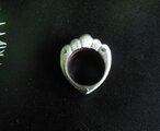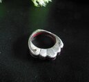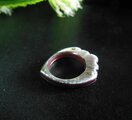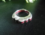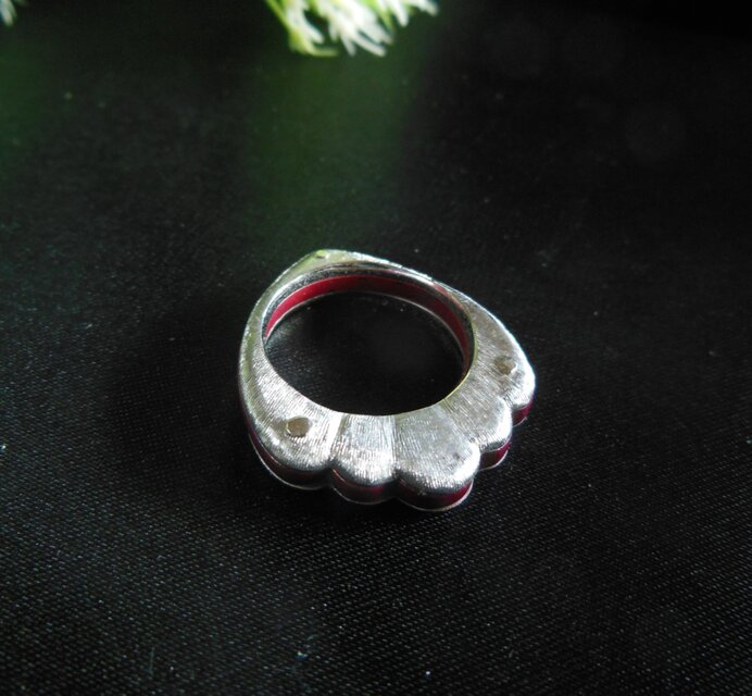 緋銅(銅を緋色に特殊コーティングした伝統技法)をsilverで挟んで、かしめたリングです。緋銅の赤色がきれいです。サイドはシルクラインのテクスチャーを入れてあります。