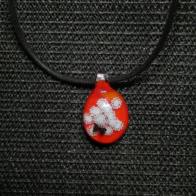 白い向日葵と蝶 NO.452(ガラス、とんぼ玉、一点物、伝統工芸、ネックレス)