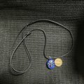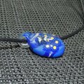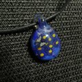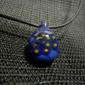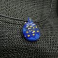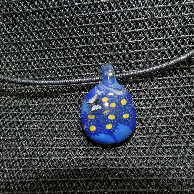 青い向日葵と蝶 NO.453(ガラス、トンボ玉、一点物、伝統工芸、ネックレス)