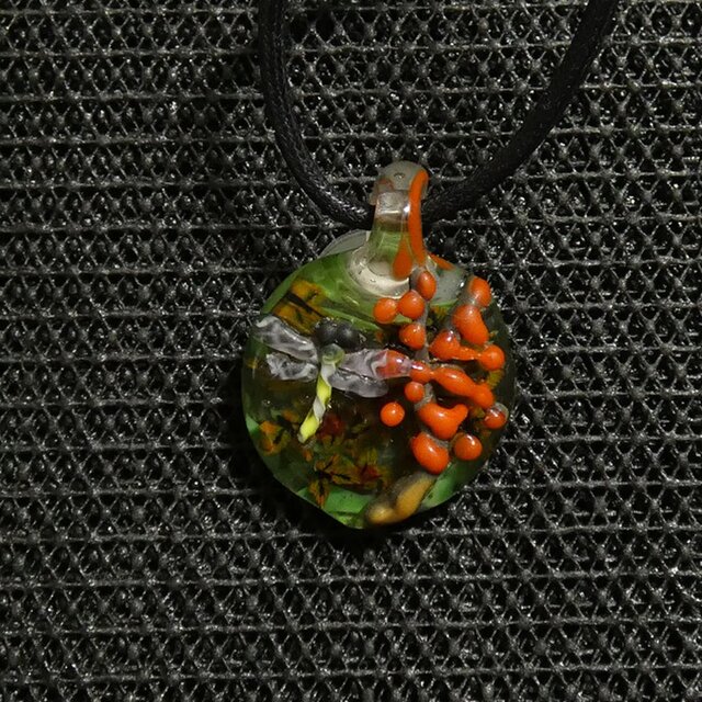 とんぼ、と柿 NO.454(ガラス、トンボ玉、一点物、伝統工芸、ネックレス)