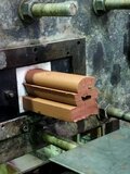 真空土練機による湿式押出成形という方法で作られています。ところ天みたいな感じ(写真3枚目)