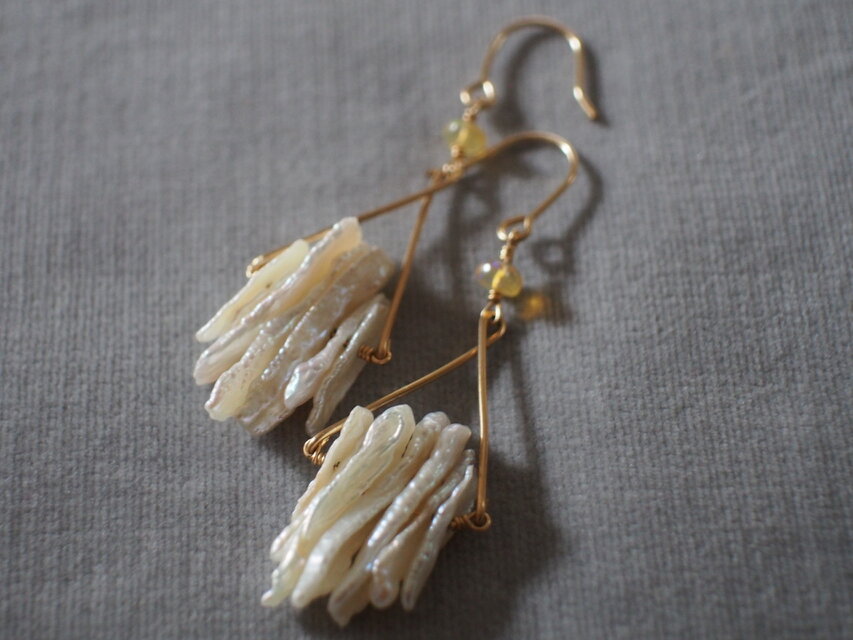 14kgf オパールとビワパールの翼ピアス k14gf