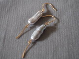 14kgf シルバーグレービワパールのシンプルピアス k14gf