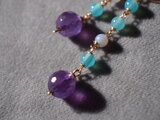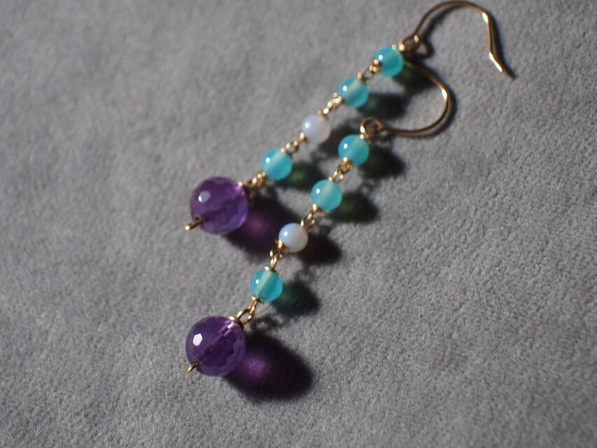 14kgf 128面カットアメジストとブルーカルセドニーピアス k14gf 華奢