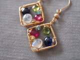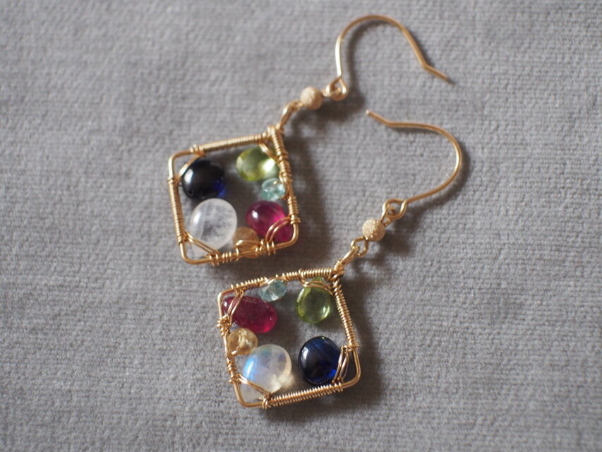 14kgf カラフルジェムのスクエアピアス k14gf 正四角形 ルビー カイヤナイト