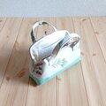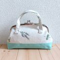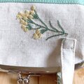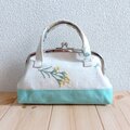 草花刺繍 トートバッグ型 大きめがま口ポーチ 17.5cm口金 通帳ケース お薬手帳ケース ミントグリーン 621