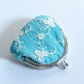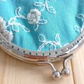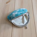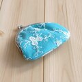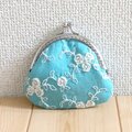 薔薇柄刺繍 がま口コインケース 8.5cm口金 小物入れ アクセサリーケース アクアターコイズ 625
