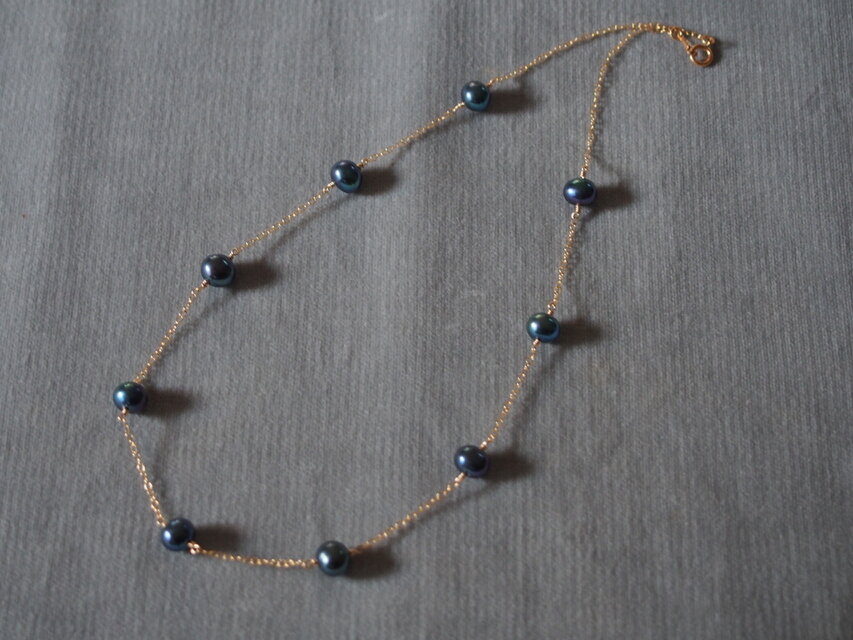 14kgf ピーコックカラーステーションネックレス k14gf 真珠 ブルー パール