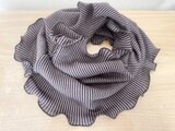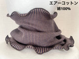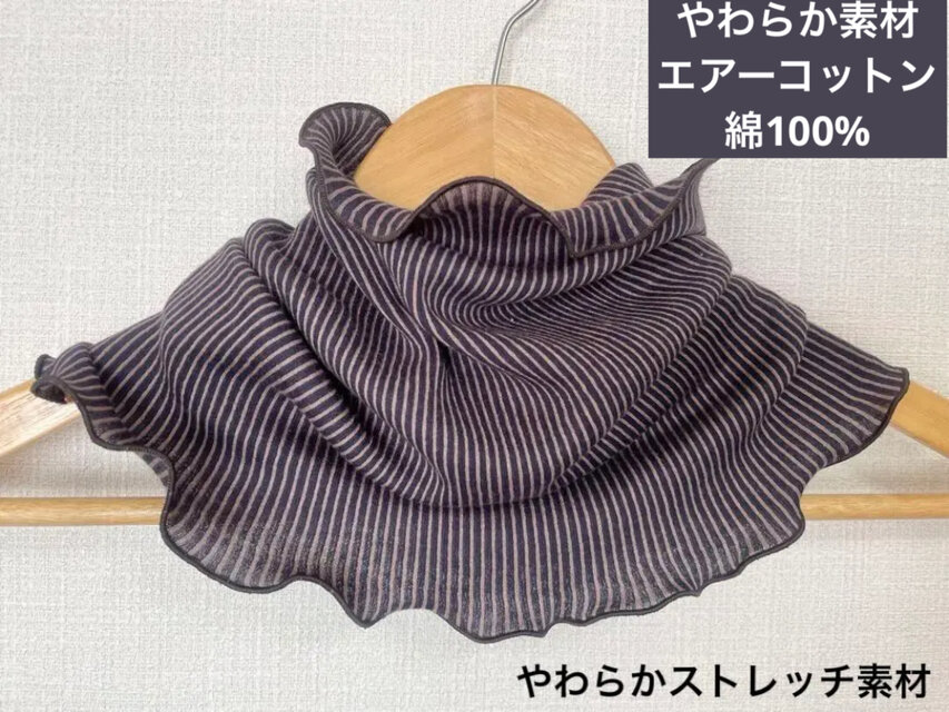 ふわふわやや厚手エアーコットン100%モカブラックストライプネックウォーマー