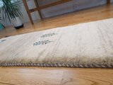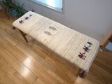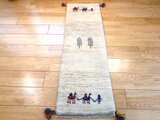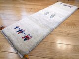 美しいアイボリーの地色に、ラクダのキャラバンが物語を描くような、とても温かみのある素敵なギャッベ
