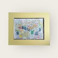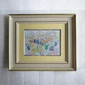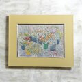 ゴールドの縁取りのあるクリーム色の額に入ったやさしい水彩画はお部屋に明るい雰囲気を添えてくれるはずです。