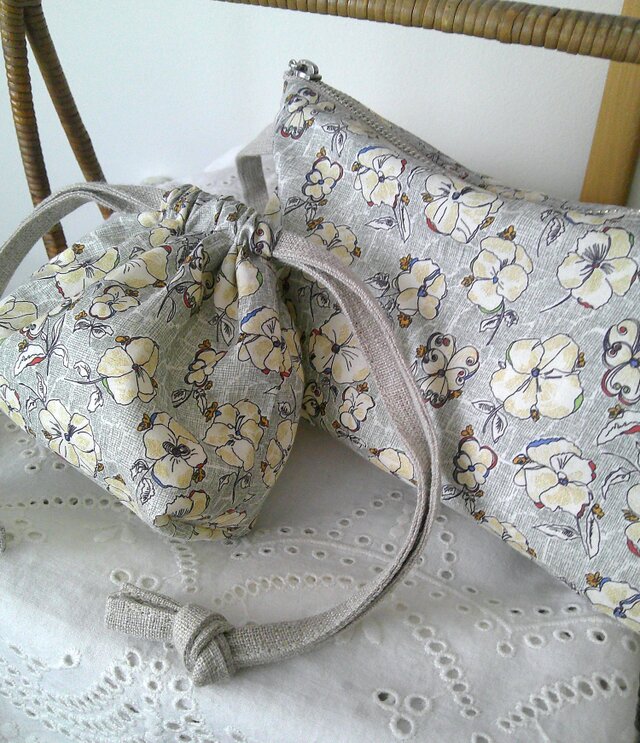 コットンとリネンのポーチセットです。