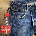 本体は緑色の姫路レザー(カラーの豊富な植物タンニンなめしの革)を使用しておりセンターのカシメは真鍮製でDカンはニッケル、ボトルホルダー部分はアルミ製です。