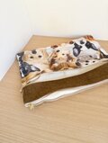 内布をつけることで丈夫で、また、うっかり中が汚れた(たとえば、お化粧品がこぼれ出てしまった…)などという場合にも、表側の生地にうつるリスクが軽減されます。