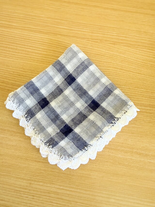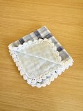 ダブルガーゼを2枚合わせにし、レース編みでふちどりをしました。