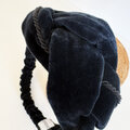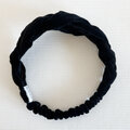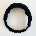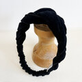 ブラック色のドイツ製コットンベロアで作ったヘアバンドです。ブラック色ののツイストパイピングコードが所々に見えます。前後の向きを変えることで違った見え方をお楽しみ頂けます。
