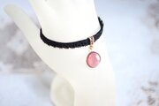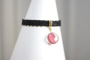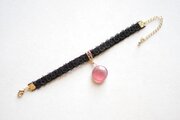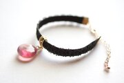零れ落ちた一粒の水滴のようなレジンを、ベルベットリボンにタティングレースで装飾を施したブレスレットに仕上げました。