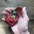 数種類用途別のレザーケースを作っている中でこちらのアイテムはギターピックを入れるのに特化したタイプのレザーケースです。