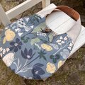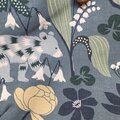 ずらんやクローバーなどの庭の花が描かれてクマも散歩しています。