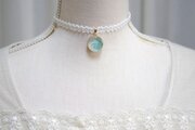 【受注製作】レジンアート ラウンドモチーフとタティングレースとサテンリボンのチョーカー〈薄氷〉