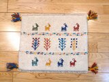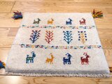 イラン・シラーズ地方の遊牧民(カシュガイ族)が、下絵を元にせず、羊やテント、動物や自然等をモチーフに、自分のインスピレーションで織り描く素朴な手織り絨毯です。基本的に、世界に1枚しかない一枚です。