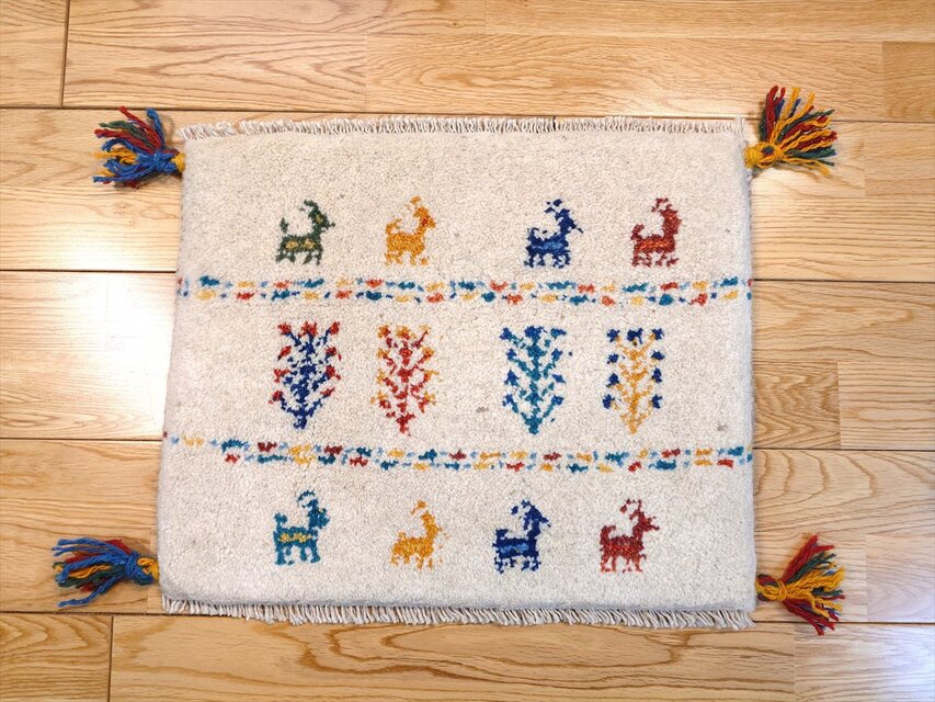 商品名: ペルシャ ギャッベ アイボリー 鹿 羊 生命の木 Z1343