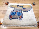 イラン・シラーズ地方の遊牧民(カシュガイ族)が、下絵を元にせず、羊やテント、動物や自然等をモチーフに、自分のインスピレーションで織り描く素朴な手織り絨毯です。基本的に、世界に1枚しかない一枚です。