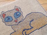 愛らしい猫たちが描かれたギャッベは、お部屋に幸せを呼び込むと言われています。