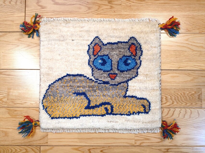 商品名: ペルシャ ギャッベ 猫 ベージュ Gray T5065