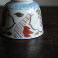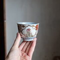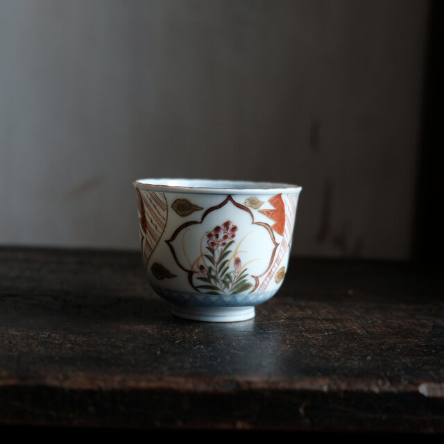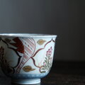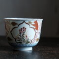窓絵に花◆冨貴長春。瀬戸焼 色絵金彩猪口 向付 松竹梅 骨董・antiques 大正時代