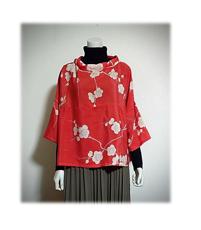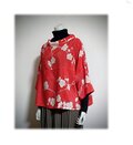119 1点物 着物リメイク プルオーバーブラウス 3シーズン ツイスト衿 リラックス 赤