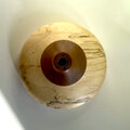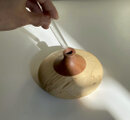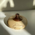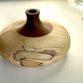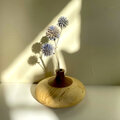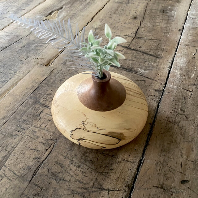 丸くふくよかなフォルムの一輪挿し トチとウォールナットの組み合わせ。