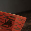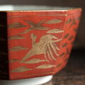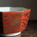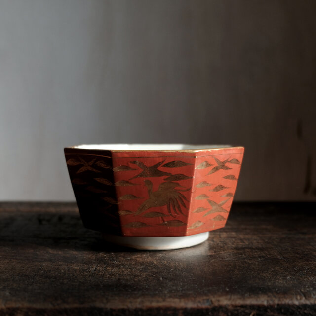 八角の形状◆雲と鳳凰の総柄。九谷焼 久谷永楽 赤絵金彩八角鉢 骨董・vintage 工芸品 昭和期