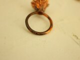 周囲は銅ですが、内側は花のままのリングです。バンドリング部分は太めの丸線を使用し、比較的なめらかなデザインですが、部分的にプツプツを残してアクセントにしました。