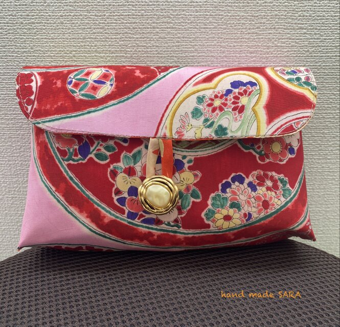 昔の子供用の祝い着を使ったポーチです。