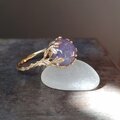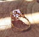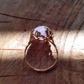 とても素敵に仕立ててくださりありがとうございました。ご丁寧に都度進捗状況もお送りいただきましたので、どのような姿になっているかは把握していたのですが、実物は見た瞬間感動が押し寄せる程素敵で、ため息が出るほどに美しく繊細です。どこから見ても本当に隙のない可憐なデザインで、眺めているだけでも幸せなのですが、せっかくリングに仕立てていただいたので大切に使用したいと思います。本当にありがとうございました!