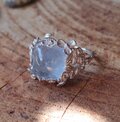 とても素敵に仕立ててくださりありがとうございました。ご丁寧に都度進捗状況もお送りいただきましたので、どのような姿になっているかは把握していたのですが、実物は見た瞬間感動が押し寄せる程素敵で、ため息が出るほどに美しく繊細です。どこから見ても本当に隙のない可憐なデザインで、眺めているだけでも幸せなのですが、せっかくリングに仕立てていただいたので大切に使用したいと思います。本当にありがとうございました!