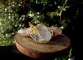 今日無事商品受け取りました。 清らかな優しい雰囲気の石にシルバーのワイヤーのデザインが綺麗でとても気に入りました。 プレゼントで入れていただいた石(グリーンメノウでしょうか?)も癒されます。 この度はありがとうございました!