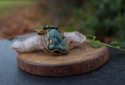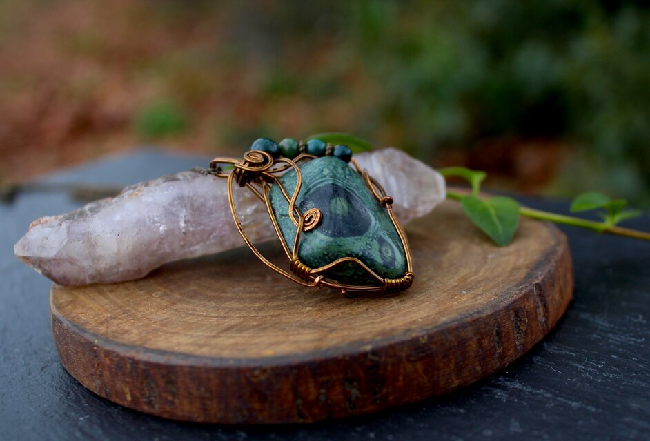 とても綺麗で存在感のある素敵な作品をありがとうございました。ワイヤーに飾られたチューライトやロードナイト、アンデシン、ガーネットのビーズもアンフィボールちゃんと良くあっていてすごく可愛いです♪ アンフィボールの石さんは、初めて見たのですが内包物もとても綺麗で色々な世界が広がっていて、ずっと見ていれます。この度も素敵な作品をありがとうございました。 大切につけさせて頂きます!