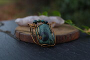 アンティークゴールドのワイヤーで巻いて、ブラッドストーンのビーズをあしらいました。