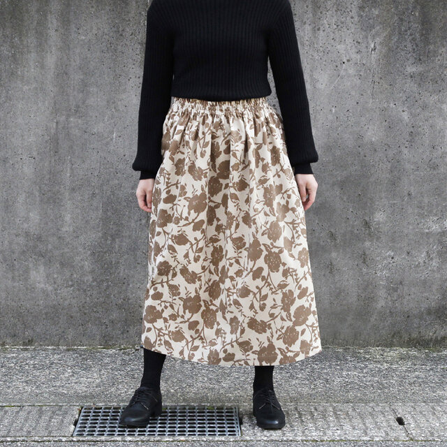 お洒落でシックな雰囲気のあるボタニカル シルエット柄のスカートです。