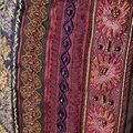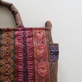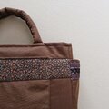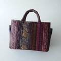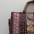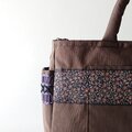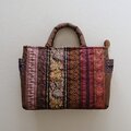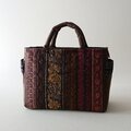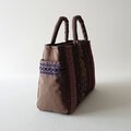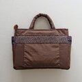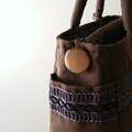 茶系のフランスリボンを集めて前面と両マチに縫い付けて、