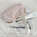 《ハートのシャンパンローズ》ピンク 花柄 レース がま口 コスメ メガネケース ポーチ