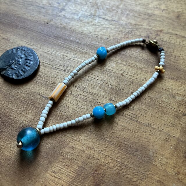 *古のVの字ブレス。@ナガ族渡のビーズ+ジャワのシードビーズ+ナガ族渡のみかん玉やベネチア、ボヘミアの古いビーズなど