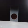 透明ガラスの一部に銀引き加工をし、透明部にブラストグラデーション加工することにより、 雲に浮かぶごとくに見えるデザインの神鏡のアイデアと共に、