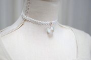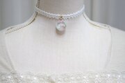 【受注製作】レジンアート ラウンドモチーフとタティングレースとサテンリボンのチョーカー〈眠花〉