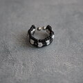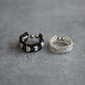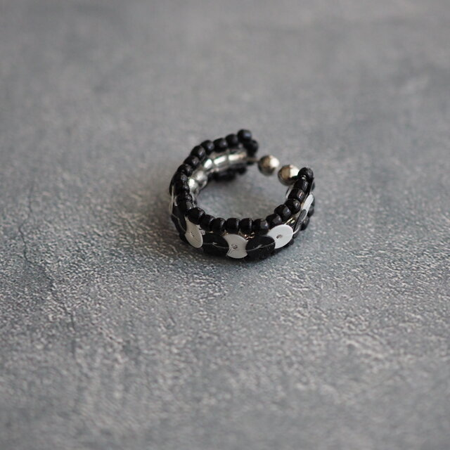 ビーズとスパンコールのイヤーカフ・中(ブラック&ホワイト)【受注】