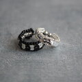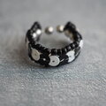 シルバーのビーズに、4㎜の黒と白のスパンコールを交互に編み付け、黒のビーズで縁取ったイヤーカフです。